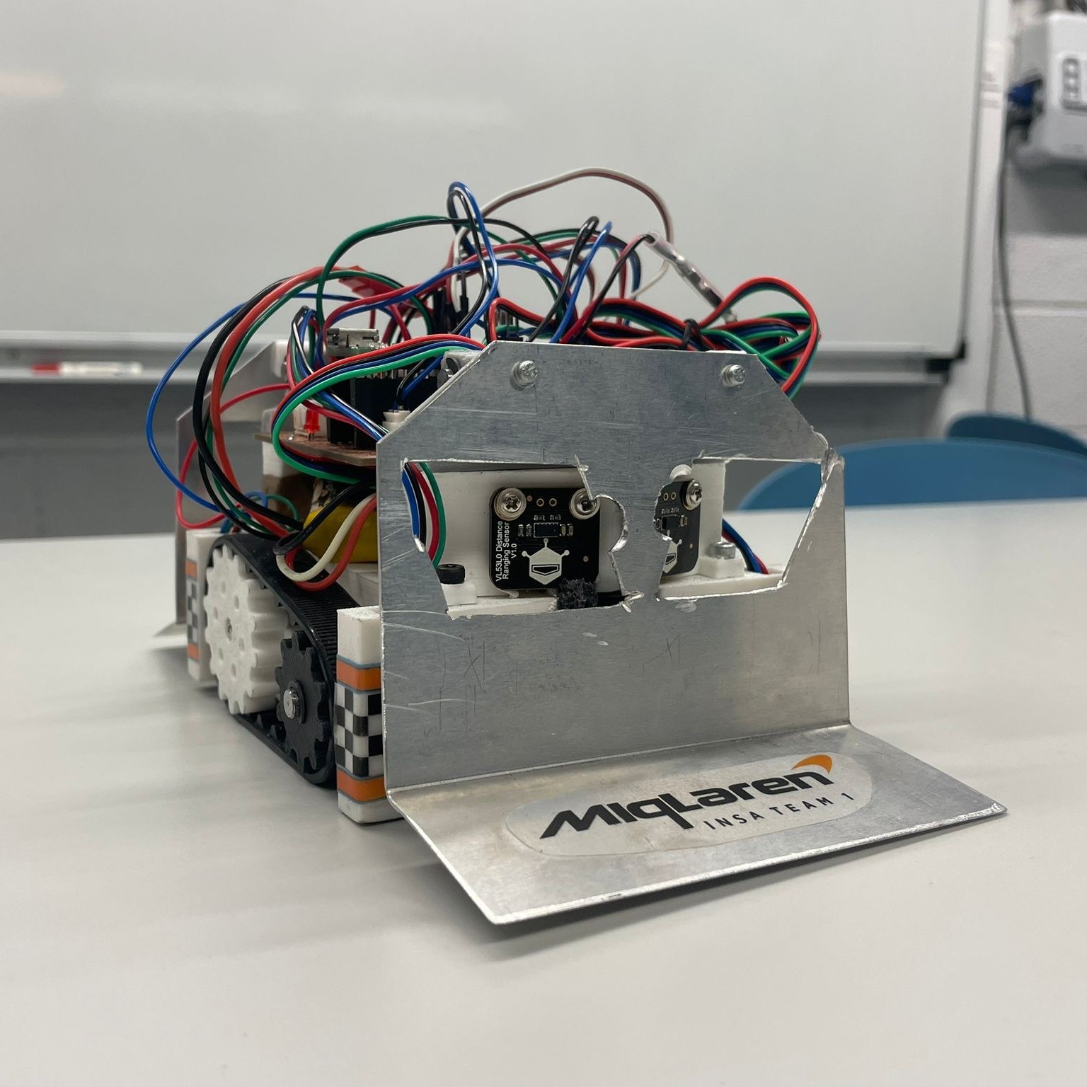 We used four of these sensors combined with an I2C Multiplexer. Why a multiplexer? Because these sensors all have the same fixed I2C address, so we needed a way to talk to them individually. This setup gave us four distinct “cones of vision,” allowing us to track the opponent far more precisely than most other teams.